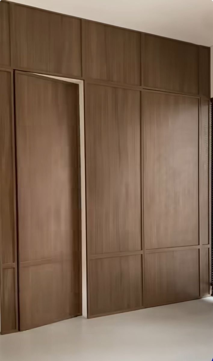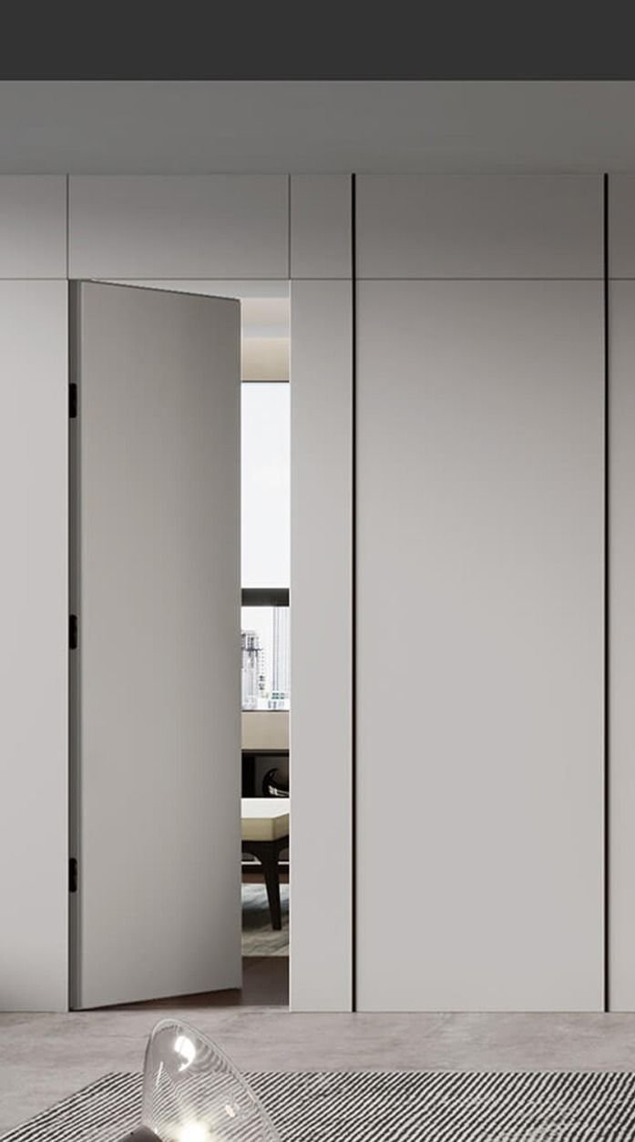 Solid RAL flush door with two horizntal integrated strips,stained to client approved color. Includesframe, architraves only. – Supply and install in quality finish.