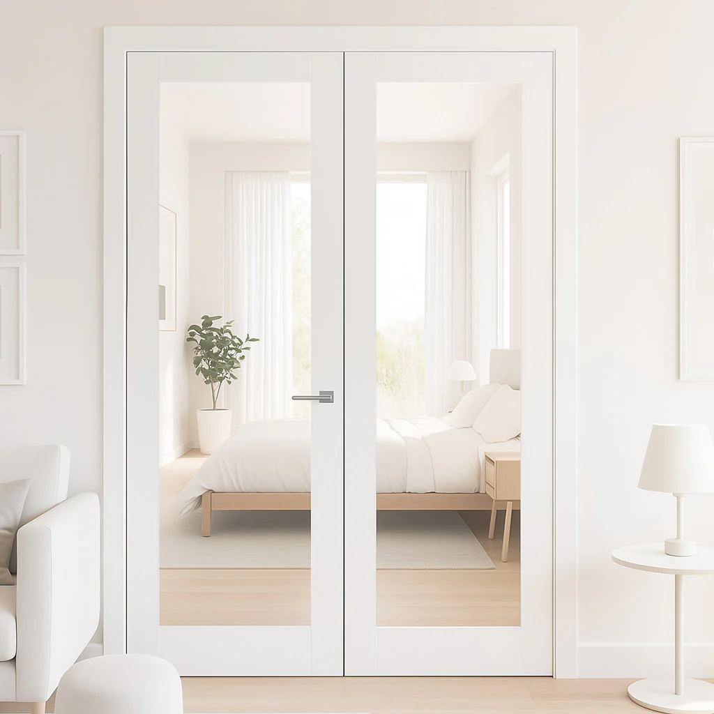 ThruEasi Room Divider – Pattern 10 White Primed Clear Glass Door with Single Side