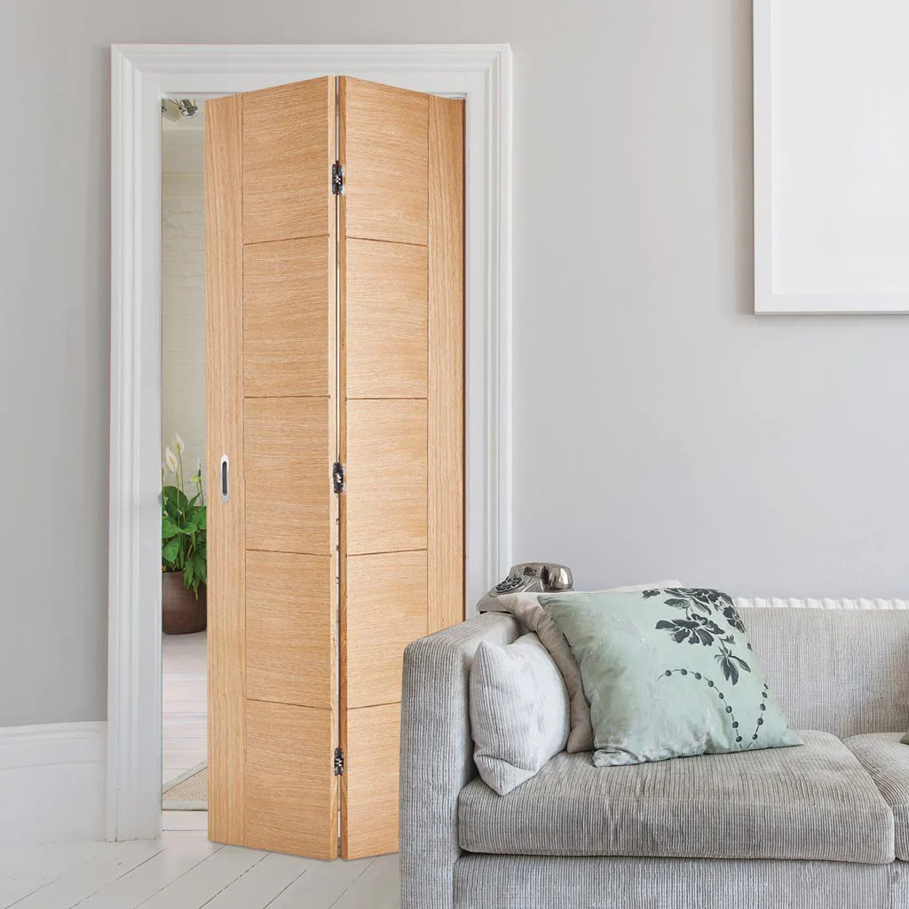 J B Kind Oak Shaker Etna Bifold Internal Door is a perfect space saving option with a stylish groove design.